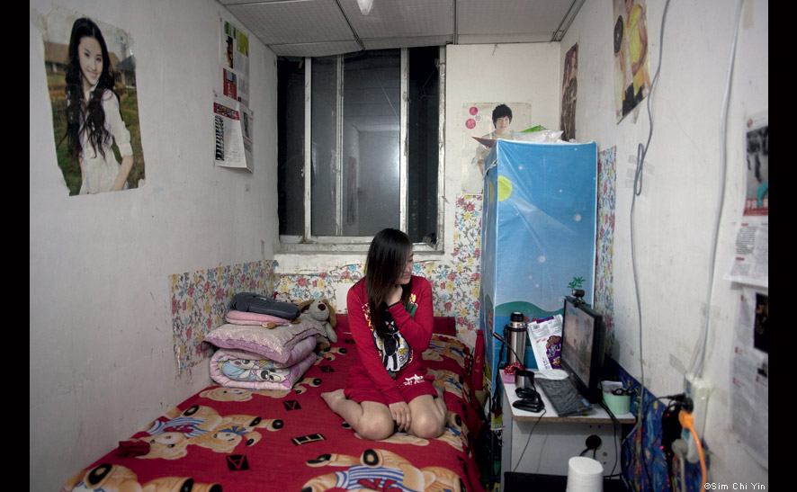 Chi Yin Sim is a photographer based in Beijing. A fourth-generation overseas Chinese, Sim grew up in Singapore. Her photographs explore beneath the streets of Beijing, where China's low-income workers squash into tiny living spaces.