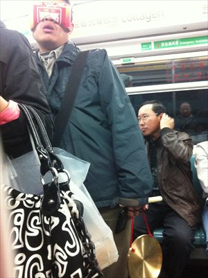 A female passenger, surnamed Zhao, said she saw the man as she got on the train at Xizhimen Subway Station on Line 2 Wednesday morning.