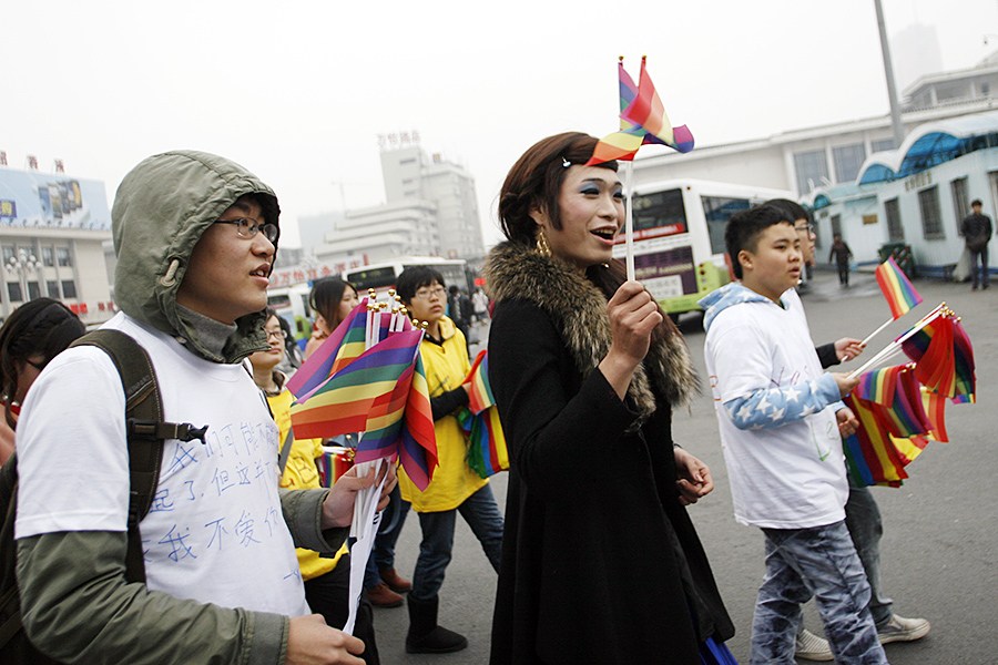More than 30 gays and transsexuals paraded in Changsha on Nov 24 to struggle for the gays' rights and urge an end to violence and discrimination.