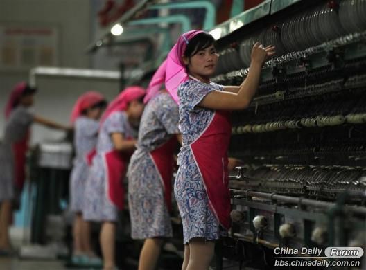 Women work in the Kim Jong-suk Pyongyang Silk Mill in Pyongyang, April 9, 2012. The factory is named after the wife of North Korea founder Kim Il-sung.